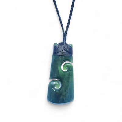 New Zealand Greenstone Pounamu Hei Toki with Double Koru Necklace