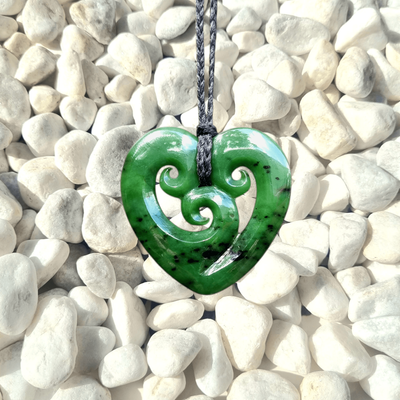 New Zealand Greenstone Pounamu Triple Koru Heart Necklace