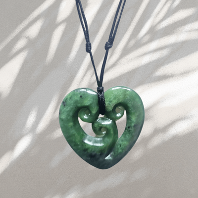 New Zealand Greenstone Pounamu Triple Koru Heart