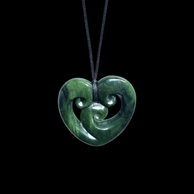 New Zealand Greenstone Pounamu Triple Koru Heart