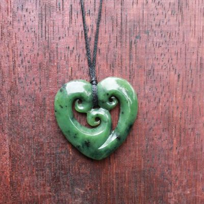 New Zealand Greenstone Pounamu Triple Koru Heart Necklace
