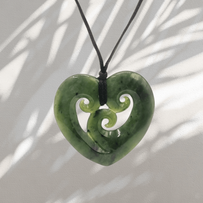 New Zealand Greenstone Pounamu Triple Koru Heart