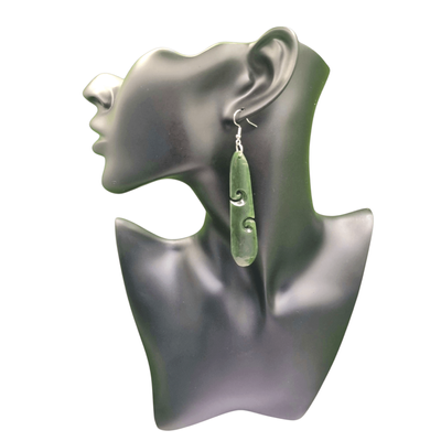 NZ Greenstone Pounamu long double Koru Drop Earrings