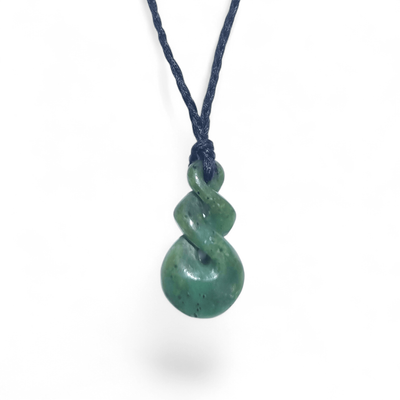 NZ Greenstone Kawakawa Pounamu Pikorua Double Twist Necklace TW085