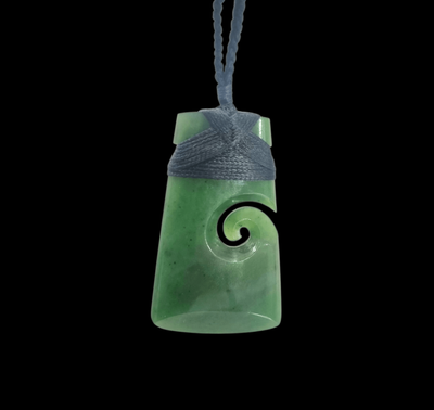 New Zealand Greenstone Pounamu Hei Toki with Koru Pendant