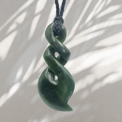 New Zealand Greenstone Pounamu Pikorua Double Twist Pendant