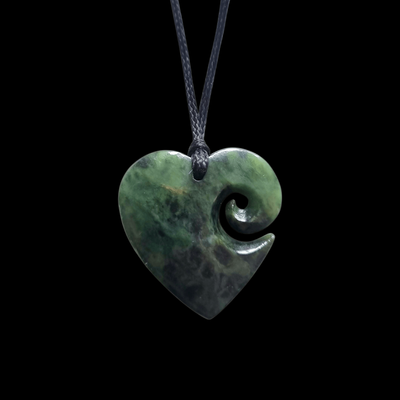 New Zealand Greenstone Pounamu Heart with Koru Pendant