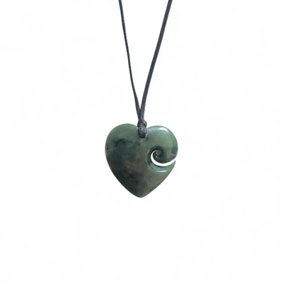 New Zealand Greenstone Pounamu Heart with Koru Pendant