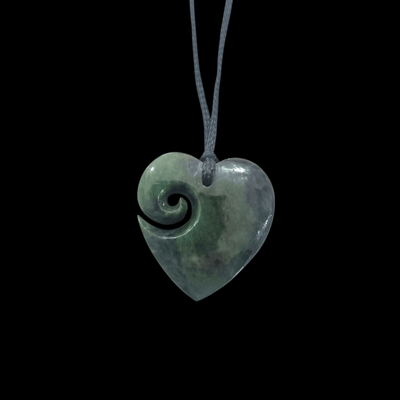 New Zealand Greenstone Pounamu Heart with Koru Pendant