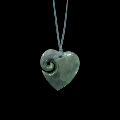 New Zealand Greenstone Pounamu Heart with Koru Pendant