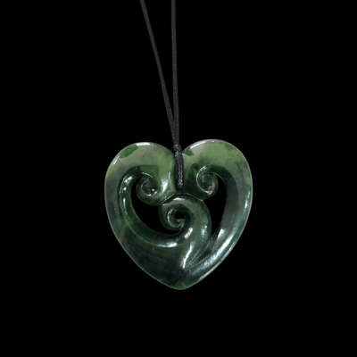 NZ Kawakawa Pounamu Triple Koru Heart Pendant TKH 001