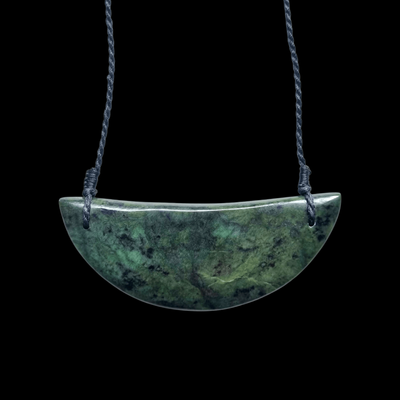 New Zealand Greenstone Pounamu Breast Plate PendantRepresents integrity, authority, strength, and protectionApproximately 110mm x 40mm Comes with a black adjustable cord in a presentation box.