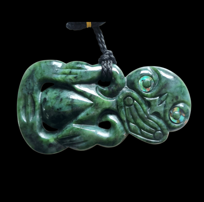 New Zealand Greenstone Hei Tiki with Paua eyes