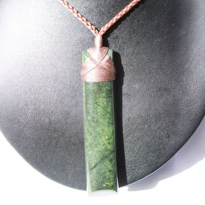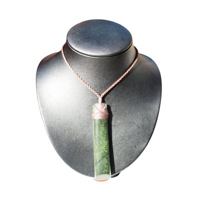 Comes with a brown plaited adjustable cord in a Kete bag