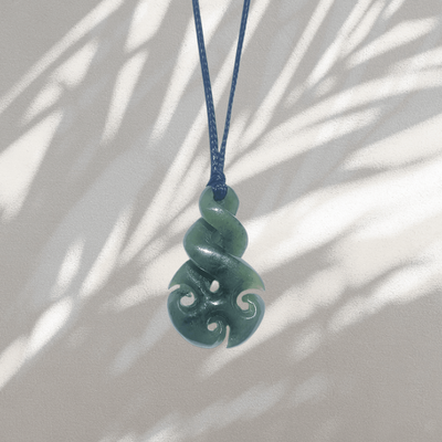 New Zealand Greenstone Pounamu Twist with Korus Pendant