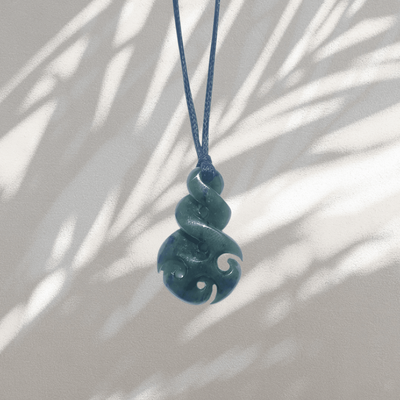 New Zealand Greenstone Pounamu Twist with Korus Pendant
