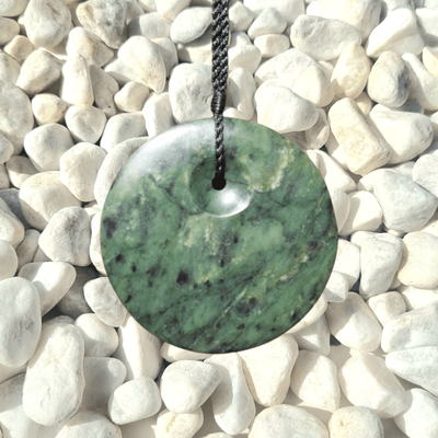 New Zealand Greenstone Pounamu Kopae Circle Disc Necklace