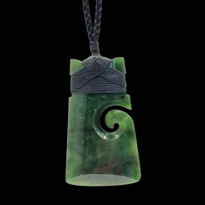 New Zealand Greenstone Pounamu Hei Toki with Koru Pendant