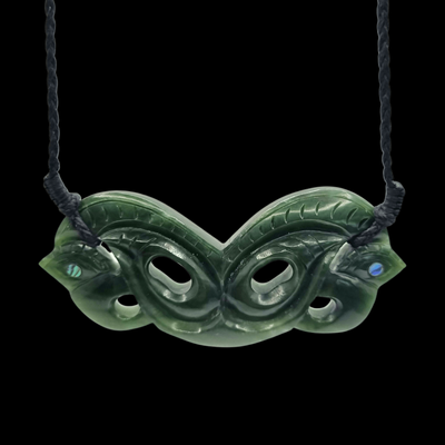 New Zealand Greenstone Pounamu Double Manaia Breast Plate