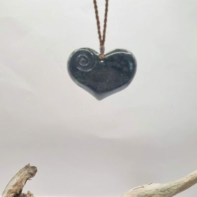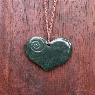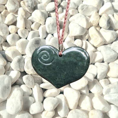 New Zealand Greenstone Pounamu Heart with Koru Pendant