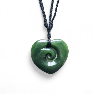 New Zealand Greenstone Pounamu Heart with Koru