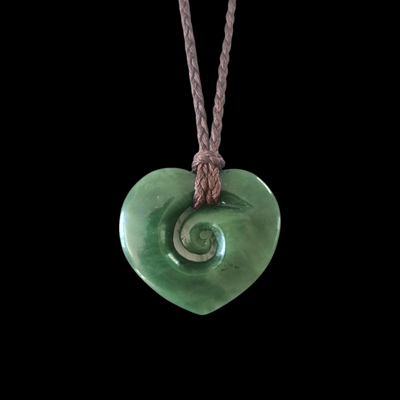 New Zealand Greenstone Pounamu Heart with Koru