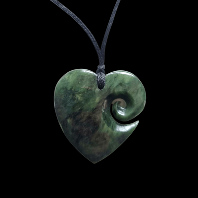 New Zealand Greenstone Pounamu Heart with Koru Pendant
