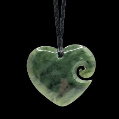 New Zealand Greenstone Pounamu Heart with Koru Pendant