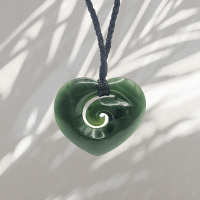 NZ Greenstone Pounamu Heart with Koru Pendant HKI 0402