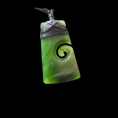 New Zealand Greenstone Pounamu Hei Toki with Koru Pendant