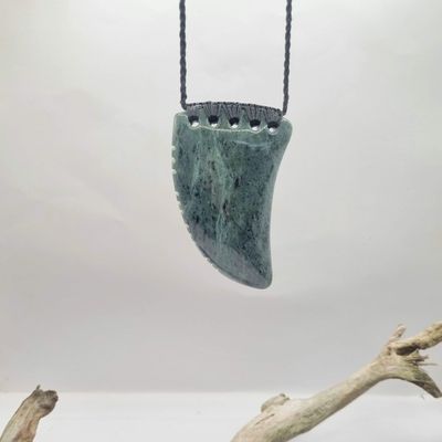 New Zealand Greenstone Pounamu Rei Niho Tooth Necklace
