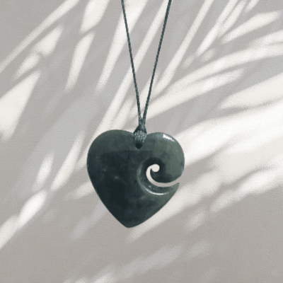 New Zealand Greenstone Pounamu Heart with Koru Pendant