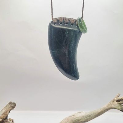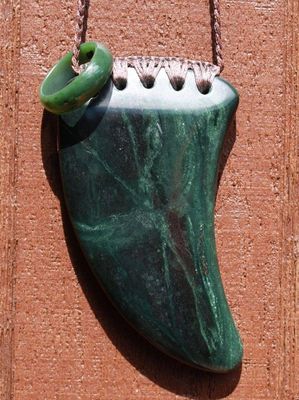 New Zealand Greenstone Pounamu Rei Niho Tooth Necklace