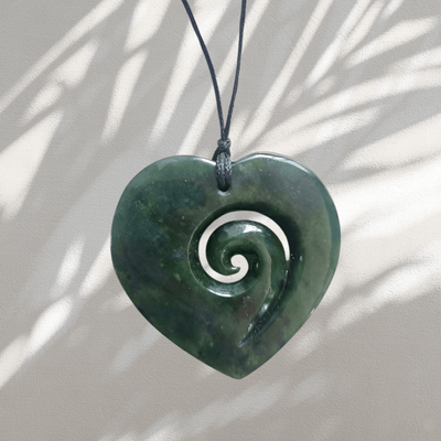 NZ Greenstone Pounamu Heart with Koru Pendant HK 200