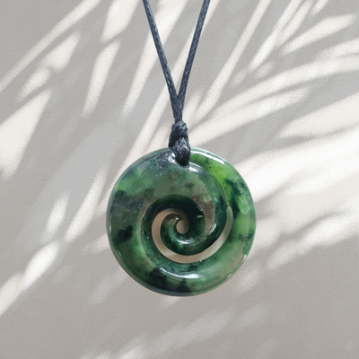New Zealand Greenstone Kawakawa Pounamu Koru Pendant K51