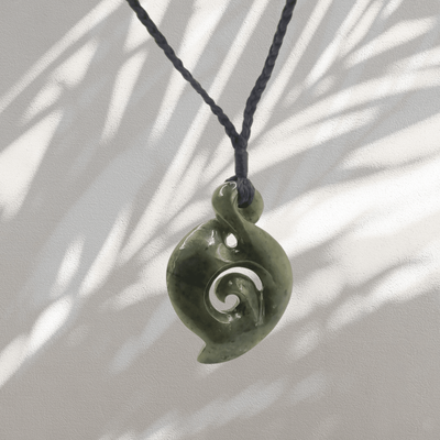 New Zealand Greenstone Pounamu Twist with Koru Pendant