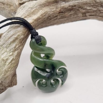 New Zealand Greenstone Pounamu Twist with Koru Necklace TW013