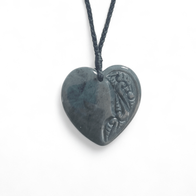 New Zealand Greenstone Pounamu Half Carved Heart Pendant