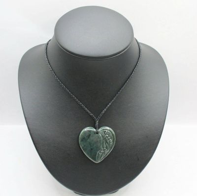 New Zealand Greenstone Pounamu Manawa Heart Necklace H008