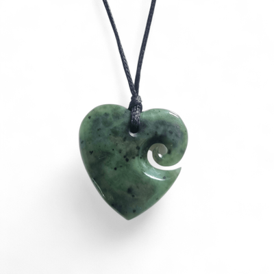 New Zealand Greenstone Pounamu Heart with Koru Pendant