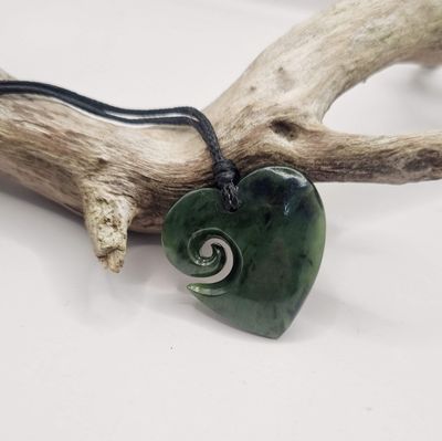 New Zealand Greenstone Pounamu Heart with Koru Necklace