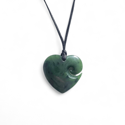 New Zealand Greenstone Pounamu Heart with Koru Pendant