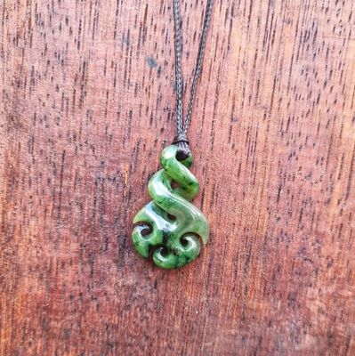 New Zealand Greenstone Pounamu Twist with Korus Pendant
