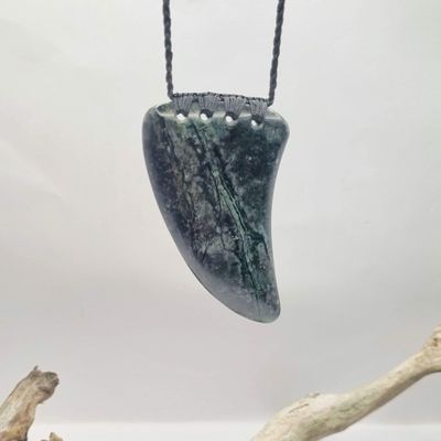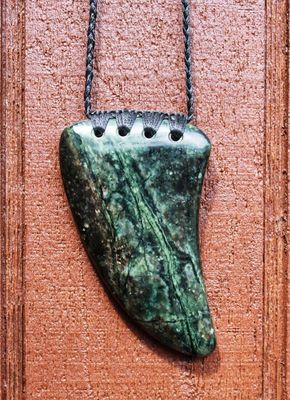 New Zealand Greenstone Pounamu Rei Niho Tooth Necklace