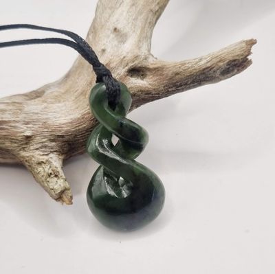 NZ Greenstone Pounamu Pikorua Double Twist Necklace TO99