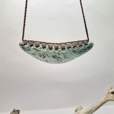 The Pounamu Breastplate is a powerful taonga symbolising mana, authority, protection, and strength. Traditionally worn by those of rank or responsibility, it is a statement piece carrying deep presence and grounding energy.
