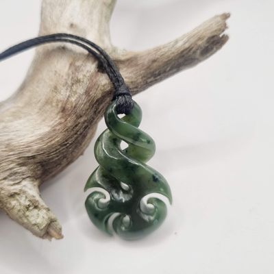 New Zealand Greenstone Pounamu Twist with Koru Necklace TW57